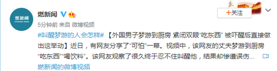来源:新浪新闻综合作者:燃新闻、新浪网 原标题:外国男子梦游到厨房 紧闭双眼“吃东西” 被吓醒后直接做出这举动 来源:燃新闻 近日,有网友分享了“可怕”一幕。视频中,该网友...