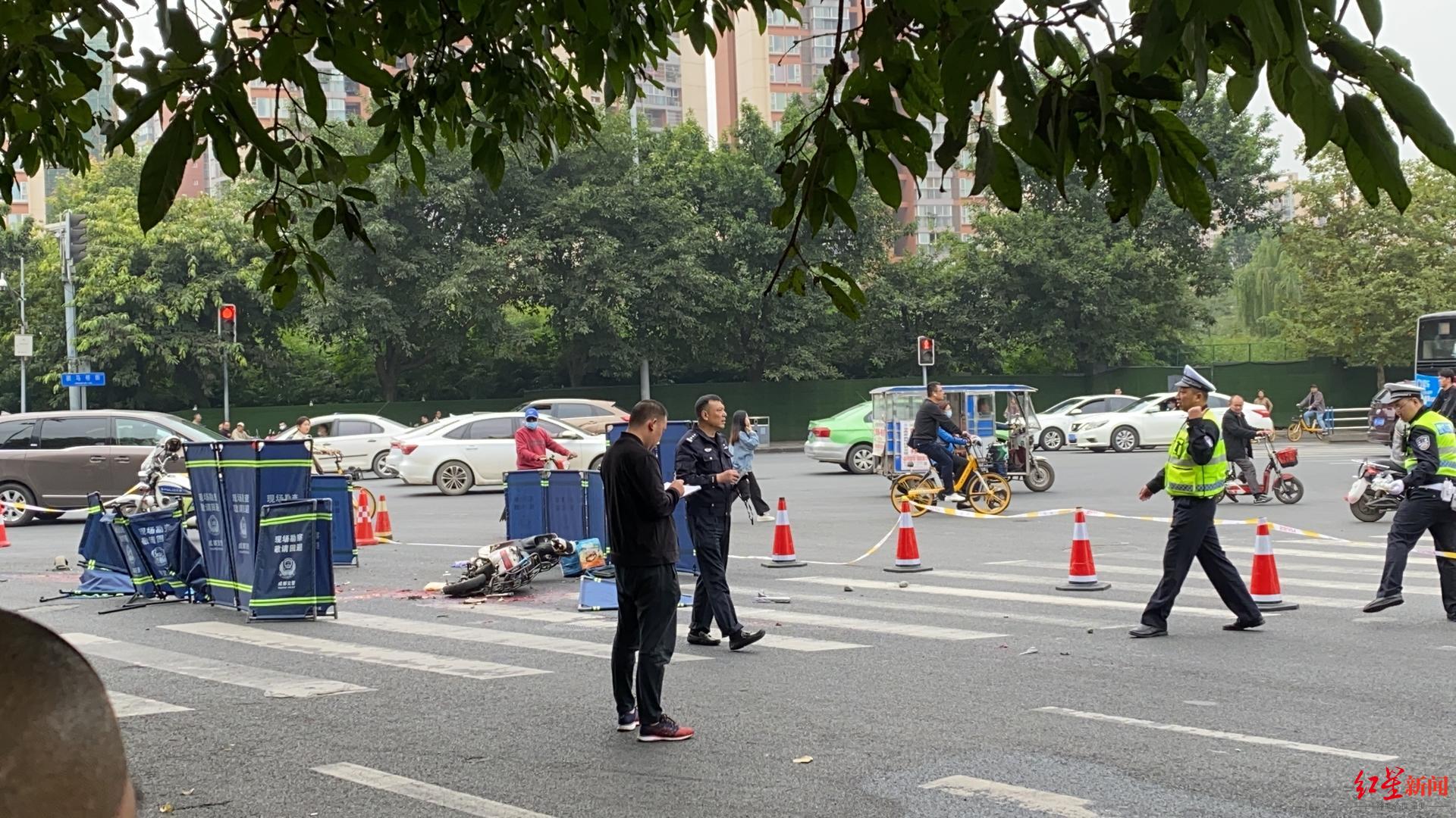 成都一大货车撞倒外卖员 现场一片狼藉