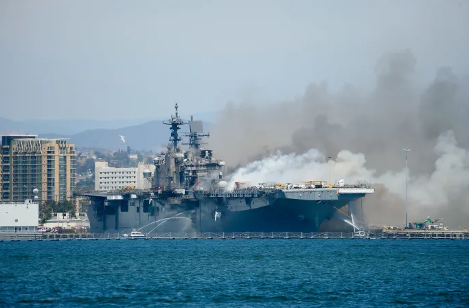 来源:海外网、新浪网现场图 (图源:Getty) 海外网8月27日电 当地时间7月12日,美国两栖攻击舰“好人理查德”号在圣迭戈海军基地爆炸起火,火势燃烧了四天以上,事故导致40名舰员和23名平民受...