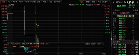 值得一提的是,晶瑞转债、今天转债此前一度涨20%触发临停,复牌后转跌20%,盘中上演“天地板”。
