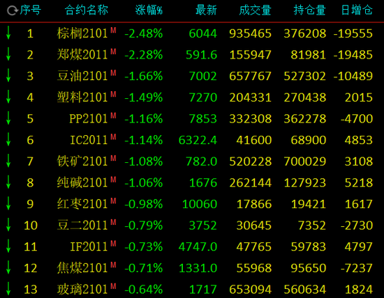 10月16日,国内期市早盘涨跌不一,能化品分化,橡胶涨近3%,沥青、短纤涨逾2%,塑料、PP、纯碱跌逾1%;黑色系走跌,动力煤跌逾2%,铁矿石跌逾1%;农产品涨跌互现,豆一涨逾2%,棉花涨近2%,棕榈油跌逾2%,豆油跌近2%。